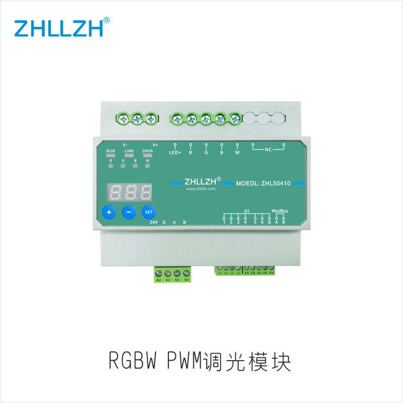 产品描述:4通道10A RGBW调光调色模块,4通道10A恒压PWM调光输出,每通道输出10A,接RGBW(红/绿/蓝/白)恒压灯带或灯条,通过ZHL902.0软件设置可实现任一通道调光调色及渐变、跳变、闪变等18种效果,变化平滑稳定,模块在大型项目实践使用中,整个过程不会出现频闪。