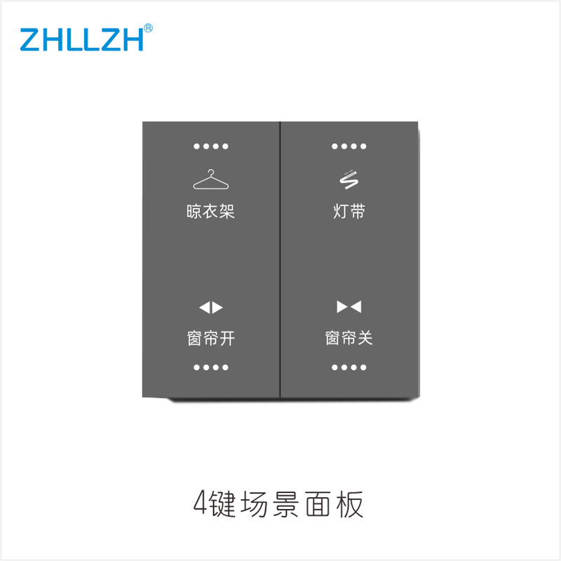 产品描述:铝合金拉丝面板,夜光显示;高端大气时尚,自定义功能;文字图形可定制;分控、单控,场景、调光调色等;按键功能分单击、双击、长按方式,触控带蜂鸣、86底盒安装。
