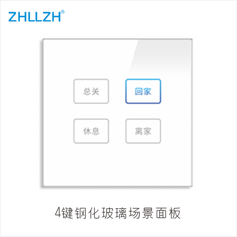 产品描述:铝合金拉丝面板,发光光圈,夜光显示;高端大气时尚,自定义功能;文字图形可定制;分控、单控,场景、调光调色等;按键功能分单击、双击、长按方式,触控带蜂鸣、86底盒安装。