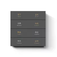 4联8键智能面板,金属边框,(铝合金)金属按键,金属按键可选择圆点/字体/图案标识进行镂空,支持透光